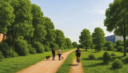 A green buffer to the north will act as a natural corridor, providing a separation between the neighbouring residential areas and the industrial and commercial activities on-site. This area will not only improve privacy for residents but will also serve as a pocket of local biodiversity, creating a habitat corridor that aligns with sustainable development goals.